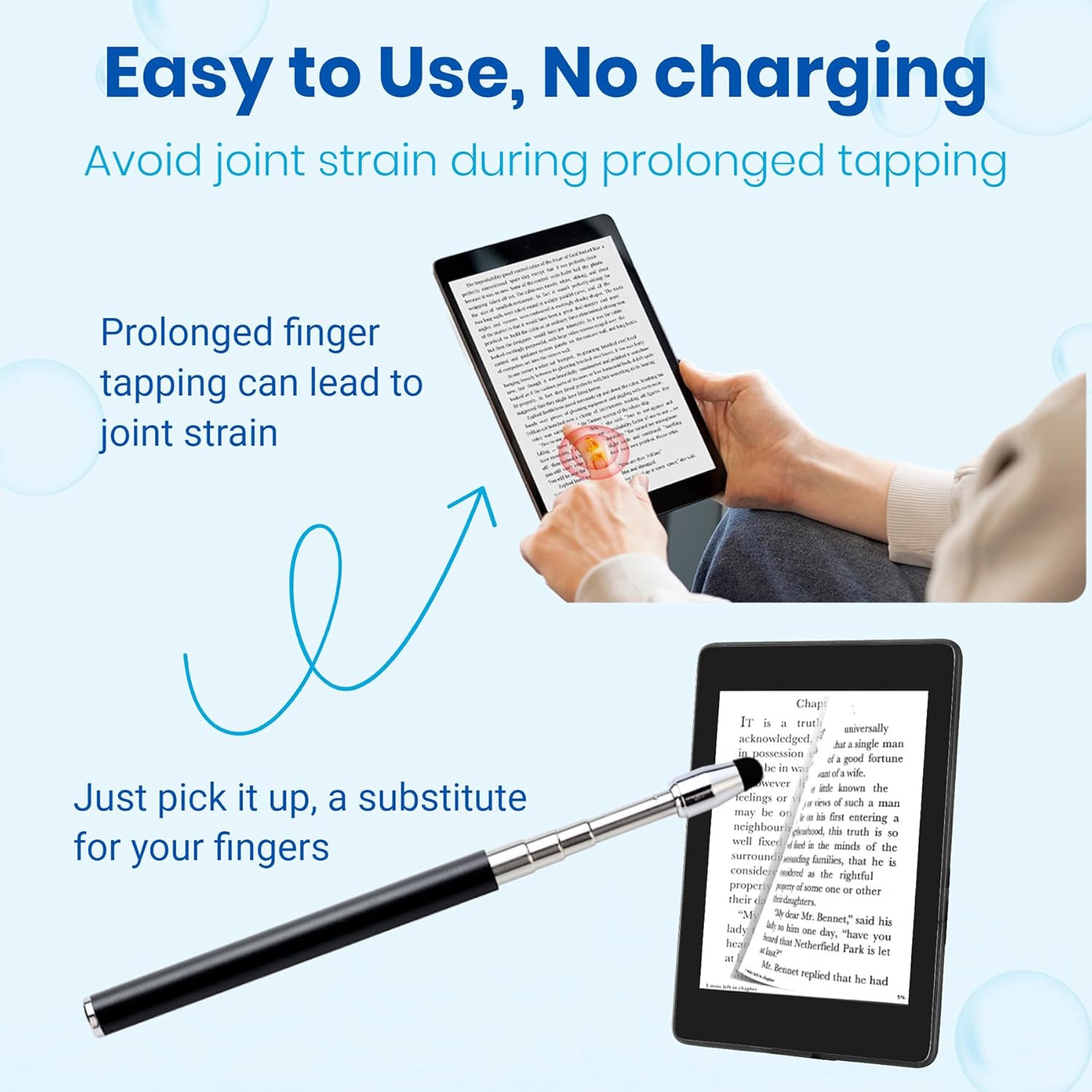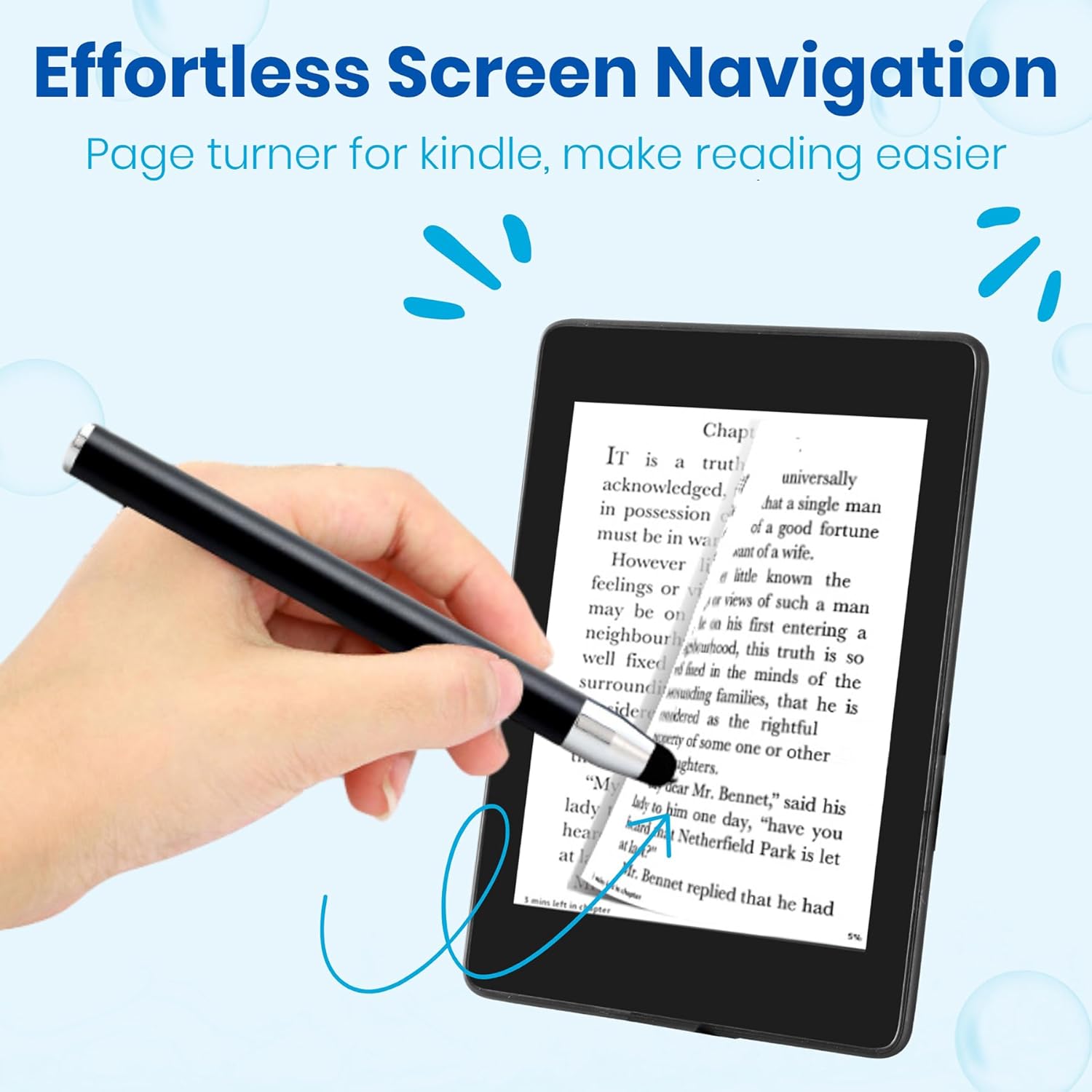 This innovative device allows you to seamlessly turn pages on your Kindle Paperwhite Oasis, iPad, or any other touchscreen device with just the click of a button. The expandable pen design ensures easy handling and comfort during long reading sessions.